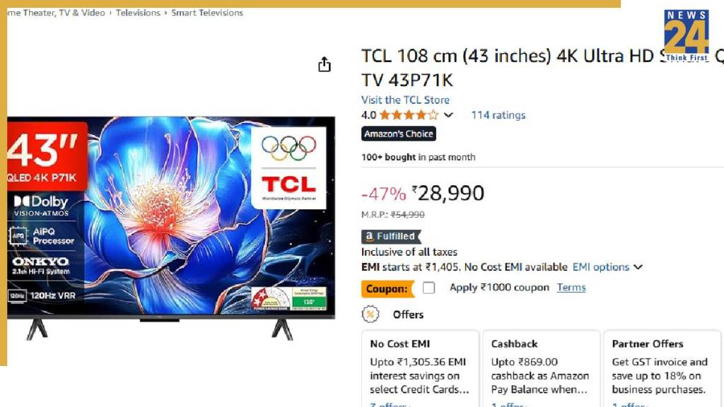 The 80 cm (32-inch) V5C Series Full HD Smart QLED TV could be one of the perfect choices, especially since it’s currently available at a price of Rs 12,490. Even at such an affordable price, the TV offers full Google TV support. In addition, it features HDR10, a Quad-Core Processor, FHD display, and OK Google voice assistant support. This could also be an ideal option if you’re looking for a display unit for your CCTV surveillance system.