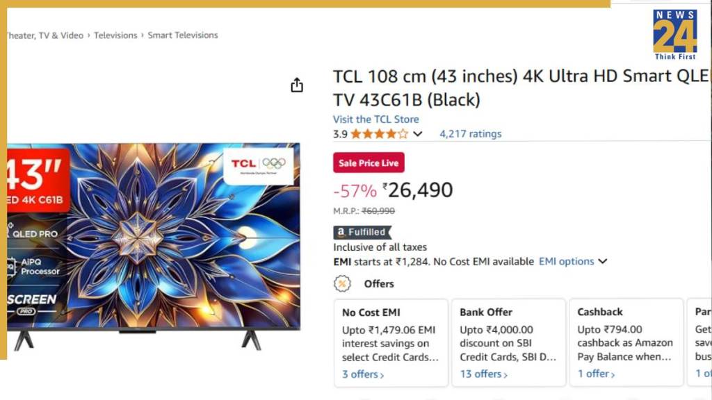 TCL 108 cm (43 inches) 4K Ultra HD Smart QLED Google TV 43C61B (Black)