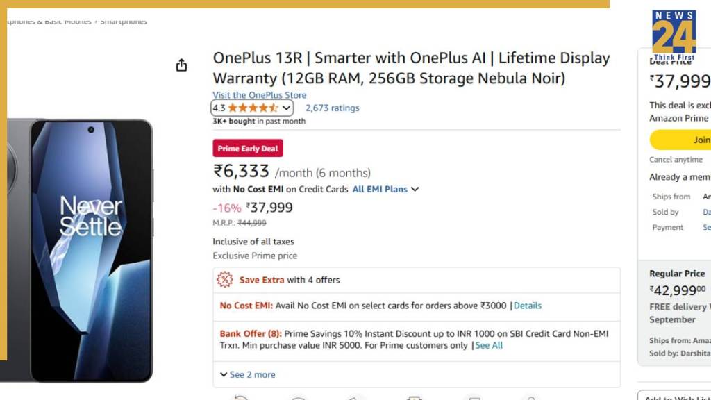Launched as an affordable flagship alternative, the OnePlus 13R is now available for ₹37,999 on Amazon. It features a stunning LTPO 4.1 AMOLED display with Ultra HDR support.