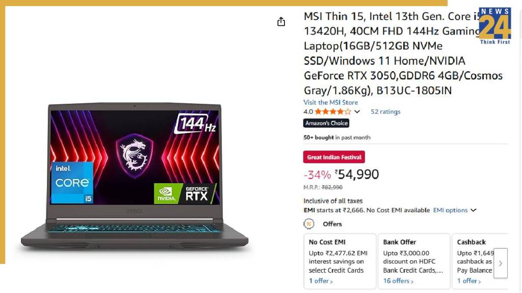 One of the standout features of the laptop is the NVIDIA GeForce RTX 3050 GDDR6 4GB graphics card. 8GB x2 DDR4 dual-channel RAM, along with a 512GB NVMe PCIe Gen 4×4 SSD storage unit. You can get this laptop for Rs 54,990 from Amazon right now, and it would be a perfect choice if you are seeking a laptop that can handle your daily work affairs and light gaming.