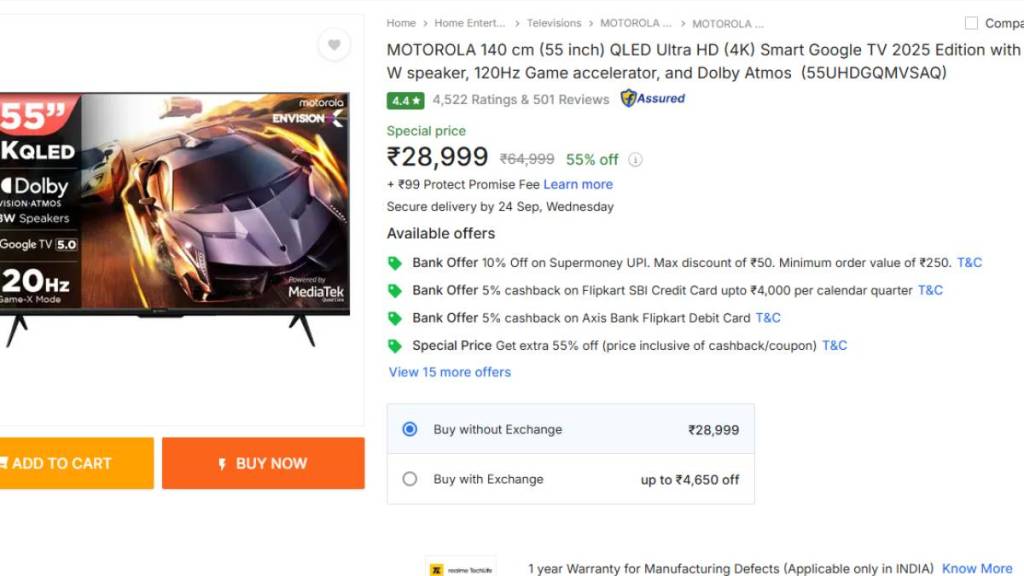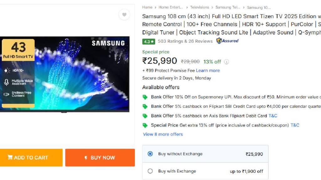Originally launched at ₹30,000, the TV is now available for ₹25,990.