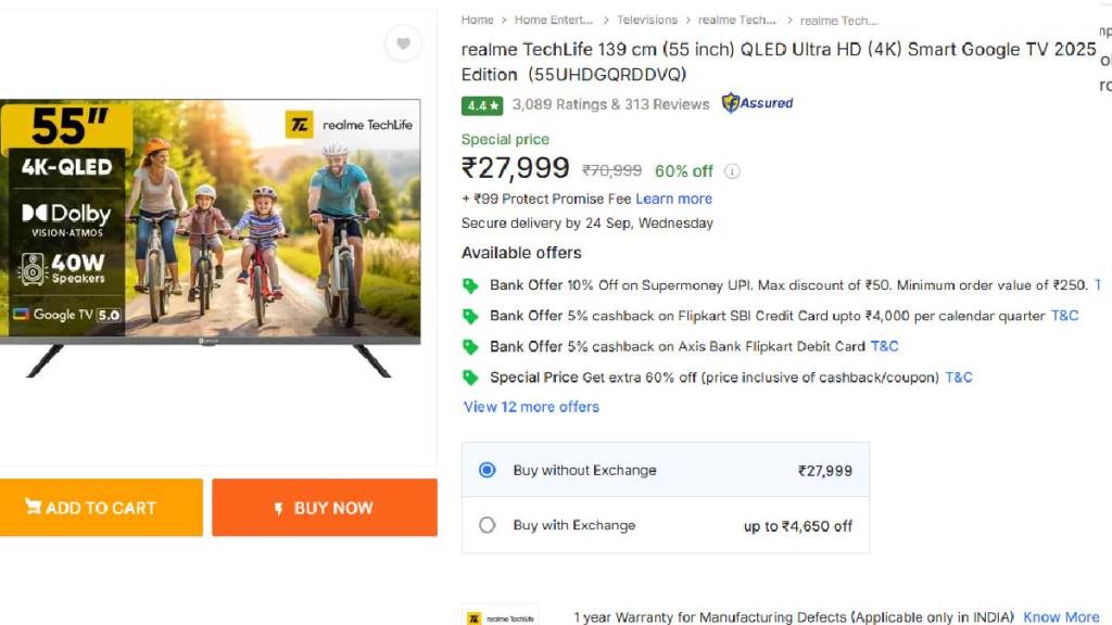 realme TechLife 139 cm (55 inch) QLED Ultra HD (4K) Smart Google TV – 2025 Edition