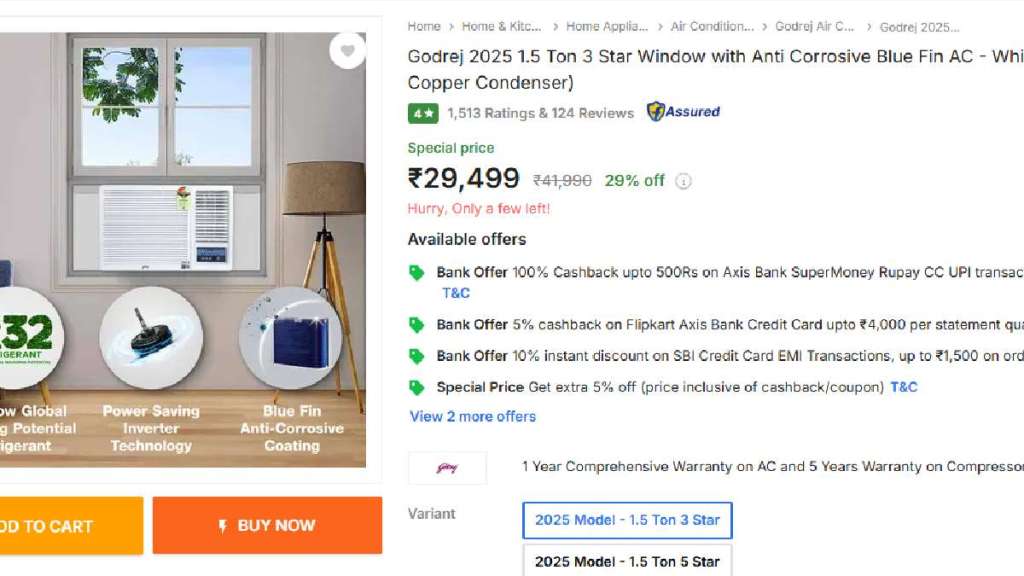 The 2025 Godrej Air Conditioner has been equipped with auto restart with a memory function that would allow the AC to start off on its own. Beyond these features the air conditioner also has a sleep mode that would allow the user to easily get through the night without any hassles. The Anti dust filter along with Anti Freeze Thermostat further makes the air conditioner a perfect voice for the summers. Since the AC has been equipped with copper tubing’s that are not susceptible to corrosion. The Active Carbon Filter along with a fire proof metal guard on the PCB for protection. You can avail the 1.5 ton 3 star AC at Rs 29,499.