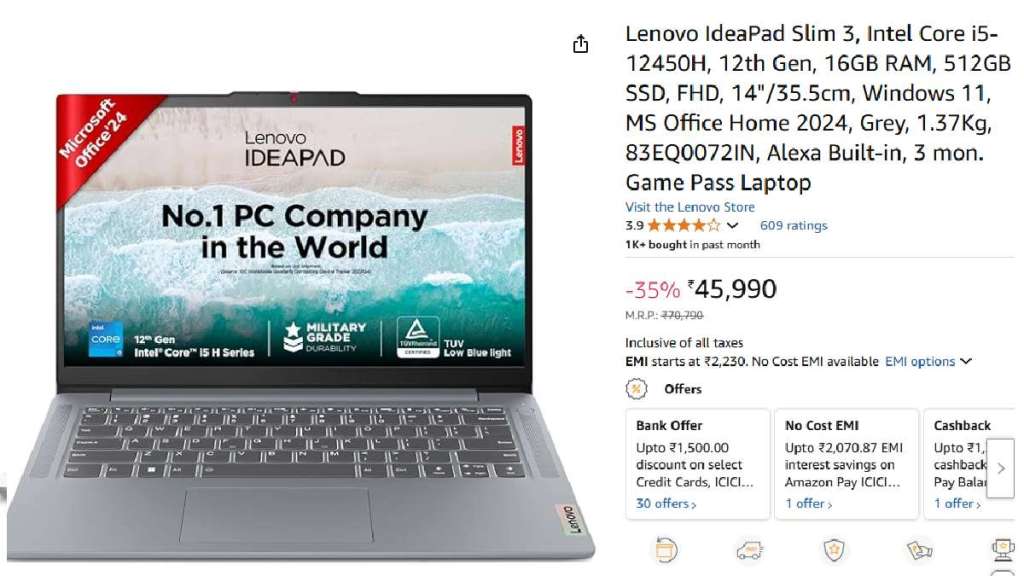 The Lenovo Ideapad is famous for offering seamless performance for everyday office tasks. The all-new Lenovo ideapad is right now available for a Price of Rs 45,990. The laptop has been equipped with an Intel Core i5 12th-gen H-series processor, with integrated Intel UHD graphics. The laptop would be equipped with a 47Wh battery and an apparatus to rapidly charge the battery. A perfect machine for anyone who seeks a laptop for normal multitasking and professional usage.