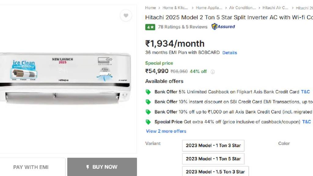 The Hitachi 2025 AC has made it to our list thanks to its advanced features which include a Ice Clean Feature that cleans the AC with first wash technology, penta sensors as well as long air throw and silent air. The Advanced filters that have been added to the AC further help it clean out air faster and emit clean cold waves for faster cooling. The cooling capacity of the AC can be expanded based on the usage and the room its bound to cool. You Can Opt for the new 2025 2 Ton 5 star Split AC for Rs 54,990 on Flipkart.