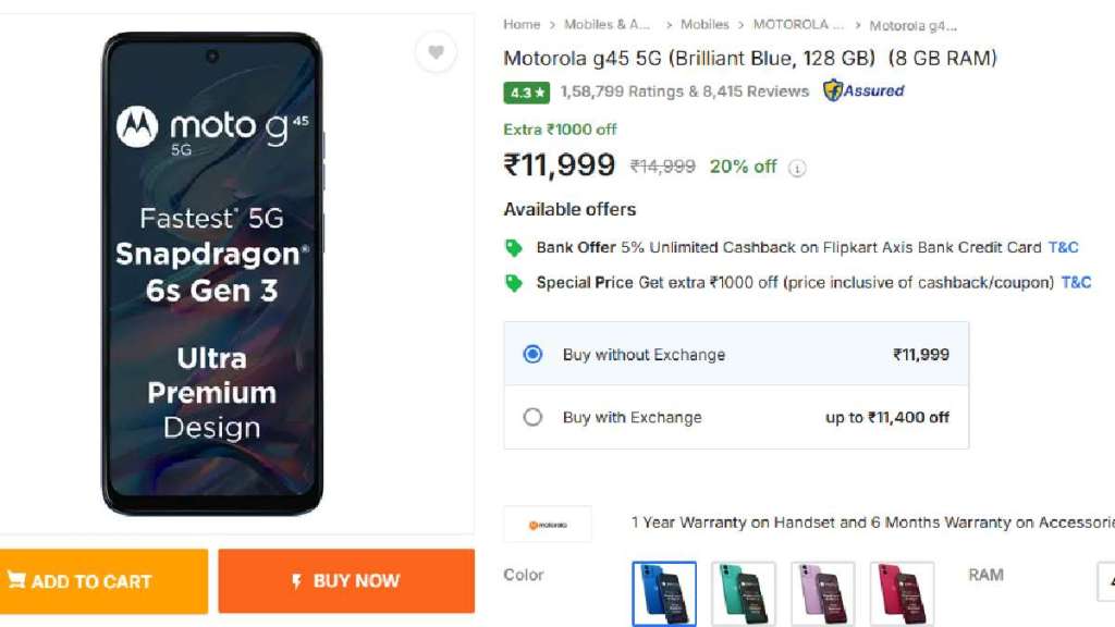 Motorola G45 5G is one of the primary products that you can choose in the price range. The phone offers users with flagship features that are seldom available in the price range. The Phone has been equipped with a 120Hz refresh rate, along with a compatibility with 13 5G connectivity bands. The extensive usage would be handled by the Snapdragon 6S Gen3 processor that would be able to easily provide the user with a balanced performance output. The phone further has a 5000 mAh battery with a 50 Megapixel Quad pixel camera that would be able to provide you picture-perfect images. The phone is available righto now at a price of Rs 11,999 on Flipkart.