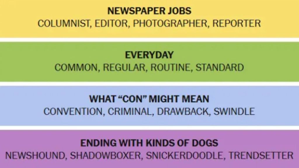Since there is only one solution to each puzzle, you need to be wary of words that might fit into more than one category. You can mix up words to potentially see the connections between them.