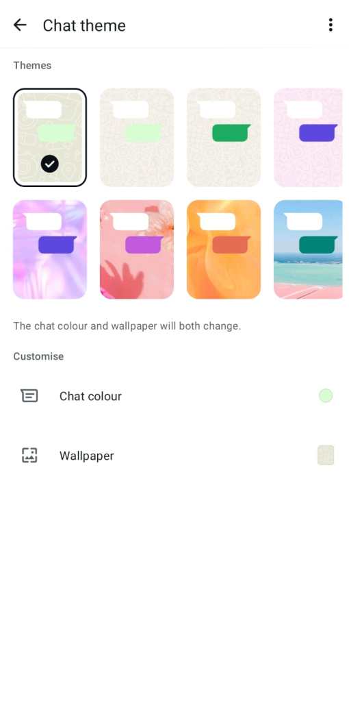 - After this you can change the themes, chat colour and wallpapers.