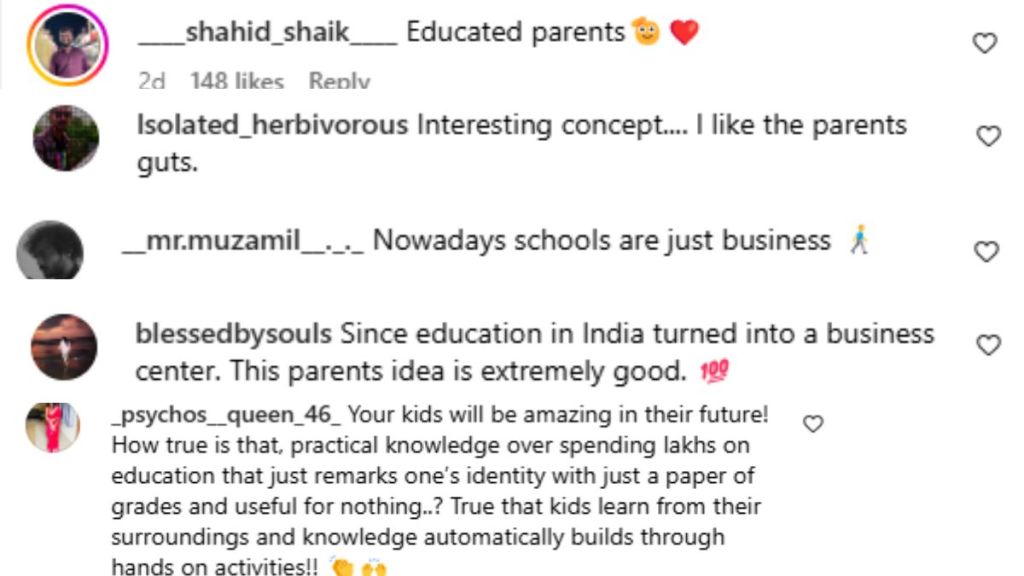 Social media users shared their thoughts about the idea of unschooling in the comments.