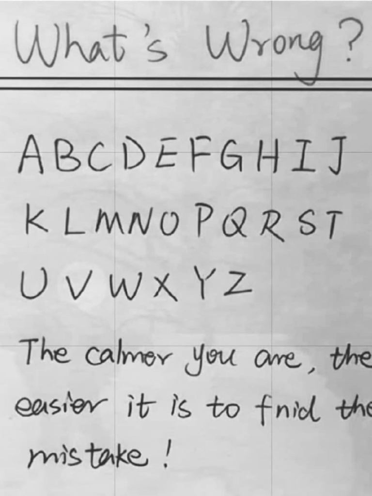 The real mistake isn’t in the alphabet, all 26 letters are in correct order. The true error lies in the sentence below:
