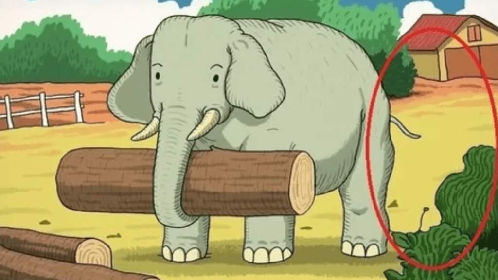 In today’s optical illusion, you will be given an image with a cute elephant lifting trunks in the middle of a bushy farm which may seem like the focal point of this image, but there is more than what meets the eye.