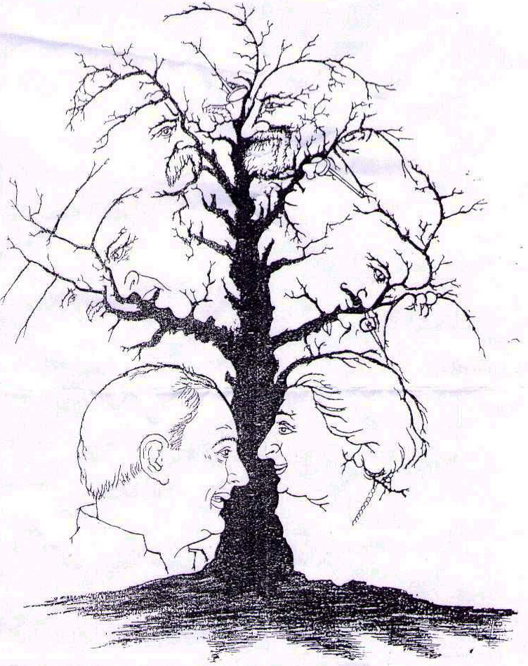 This optical illusion shows a tree with hidden faces that has engaged internet users for years now. This interesting image challenges the viewers to decipher the multiple faces that are hidden in the form of the tree’s branches and trunks.