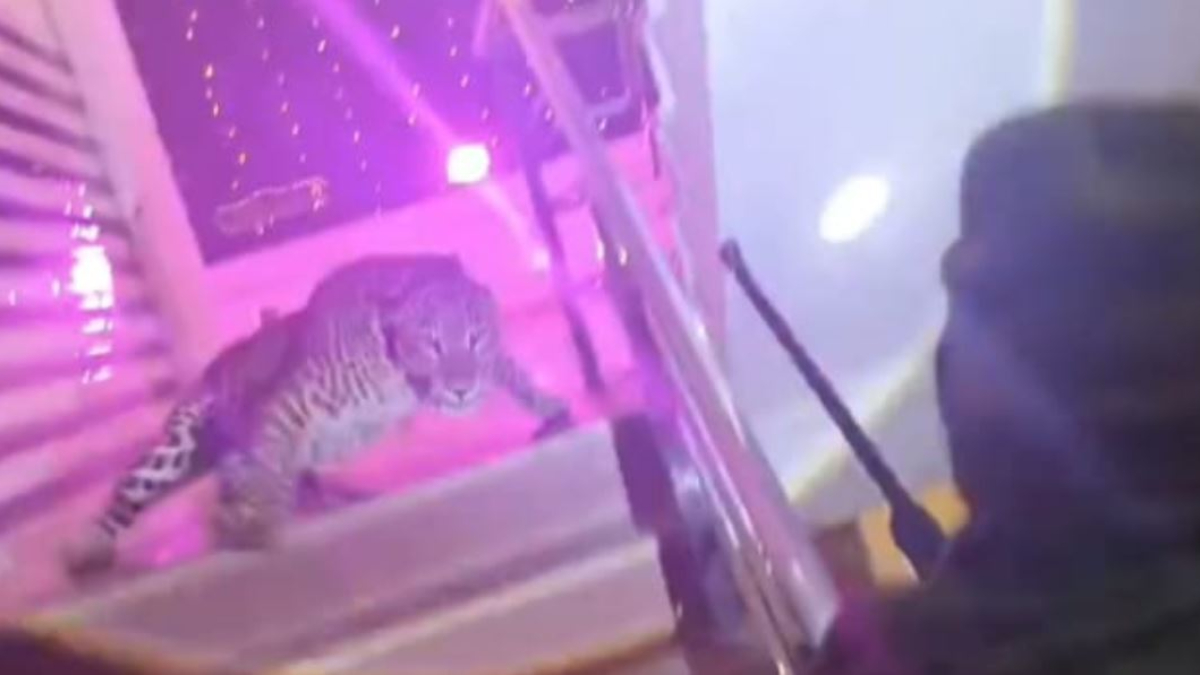 The feline also snatched a cop’s rifle when they approached to rescue the animal. In the video, the big cat is seen attacking the cops who reached the marriage lawn after receiving information about its presence.