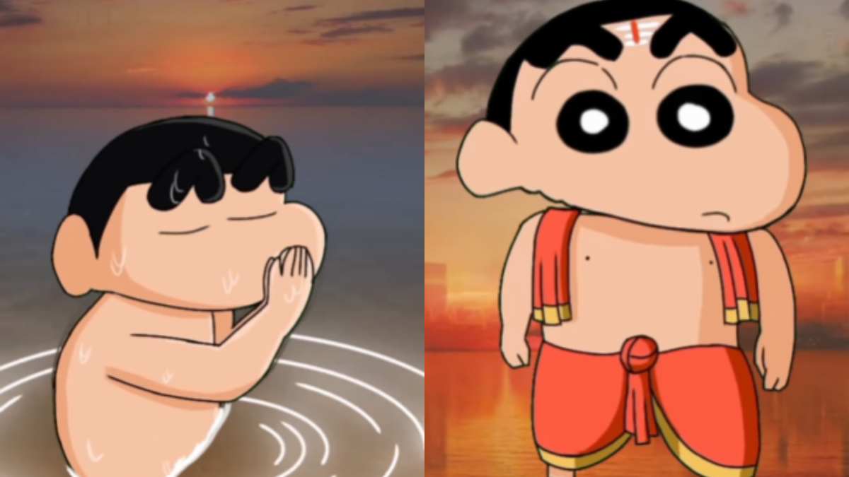 An animated video featuring Shinchan, the mischievous cartoon character taking a holy dip in Triveni Sangam during the Maha Kumbh has rapidly spread across social media platforms.