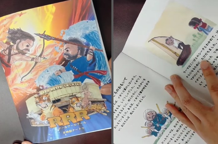 The video was shared on Instagram under the name “Roar by RRR.” The video features the film’s characters as well as text written in Japanese that explains the plot of the film. The mother apparently created the book because she thought it would be difficult for her child to watch the three-hour-long movie with subtitles.