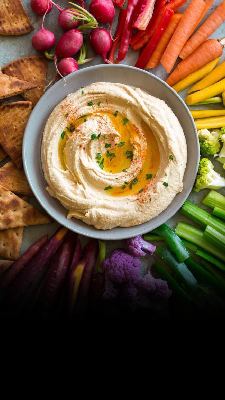 Heat things up with a spicy twist. A perfect blend of hummus and sriracha.