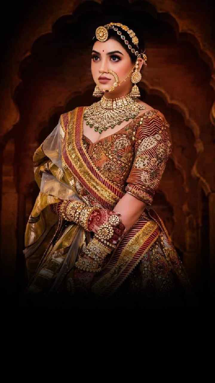 The South Indian version of the maang tikka, nethi chutti is often designed with temple jewelry motifs and adds a divine elegance to the bride’s look.