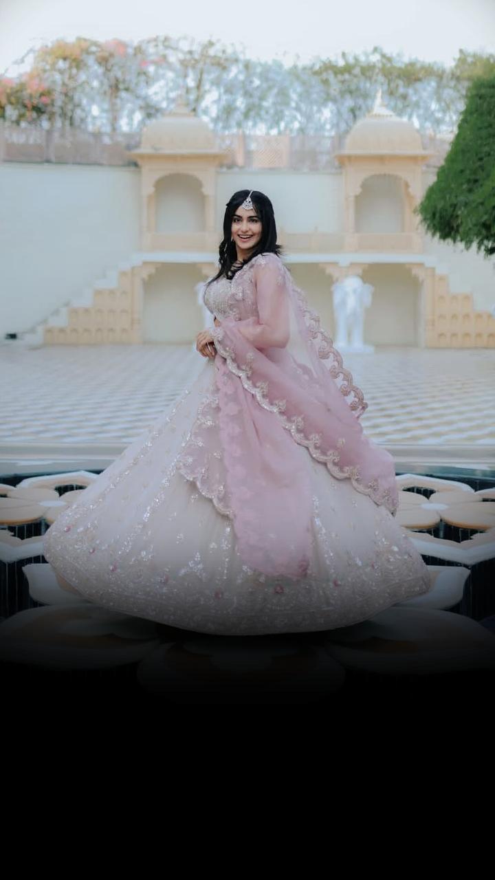 A pastel pink lehenga with delicate embroidery, exuding grace and charm.