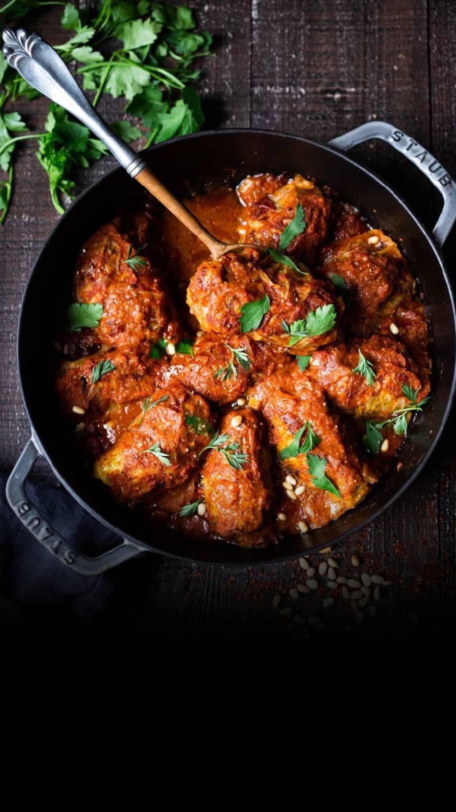 Serve your Turkish cabbage rolls hot, garnished with fresh lemon slices.