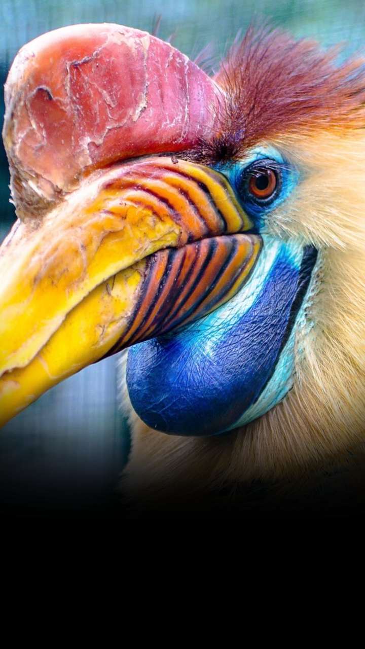 They have bright, horn-shaped casque, and can stands out in the rainforests of Southeast Asia.