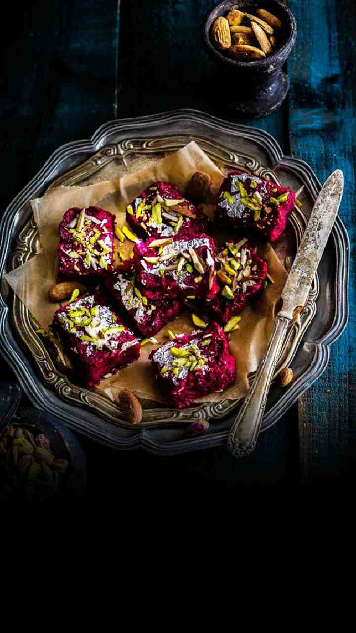 Cut into squares & enjoy your homemade Pink Beetroot Barfi.