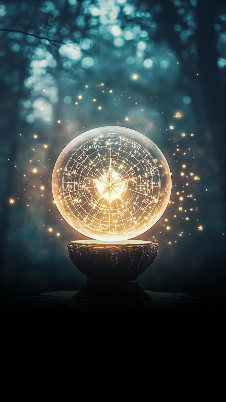 Scorpio in deep focus under a spotlight, typing or sketching.