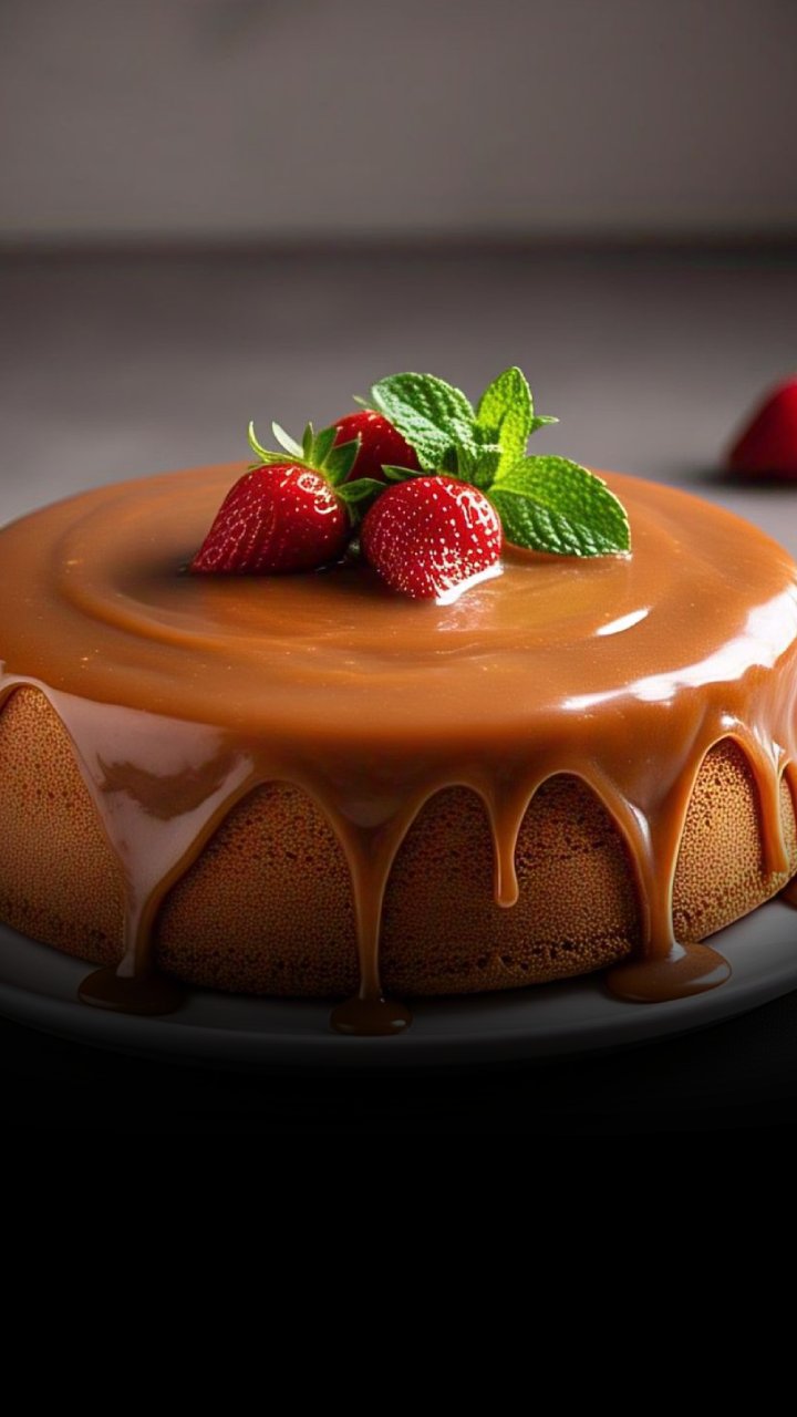 Let the cake cool slightly, then drizzle with caramel sauce before serving. Enjoy your caramel cake!
