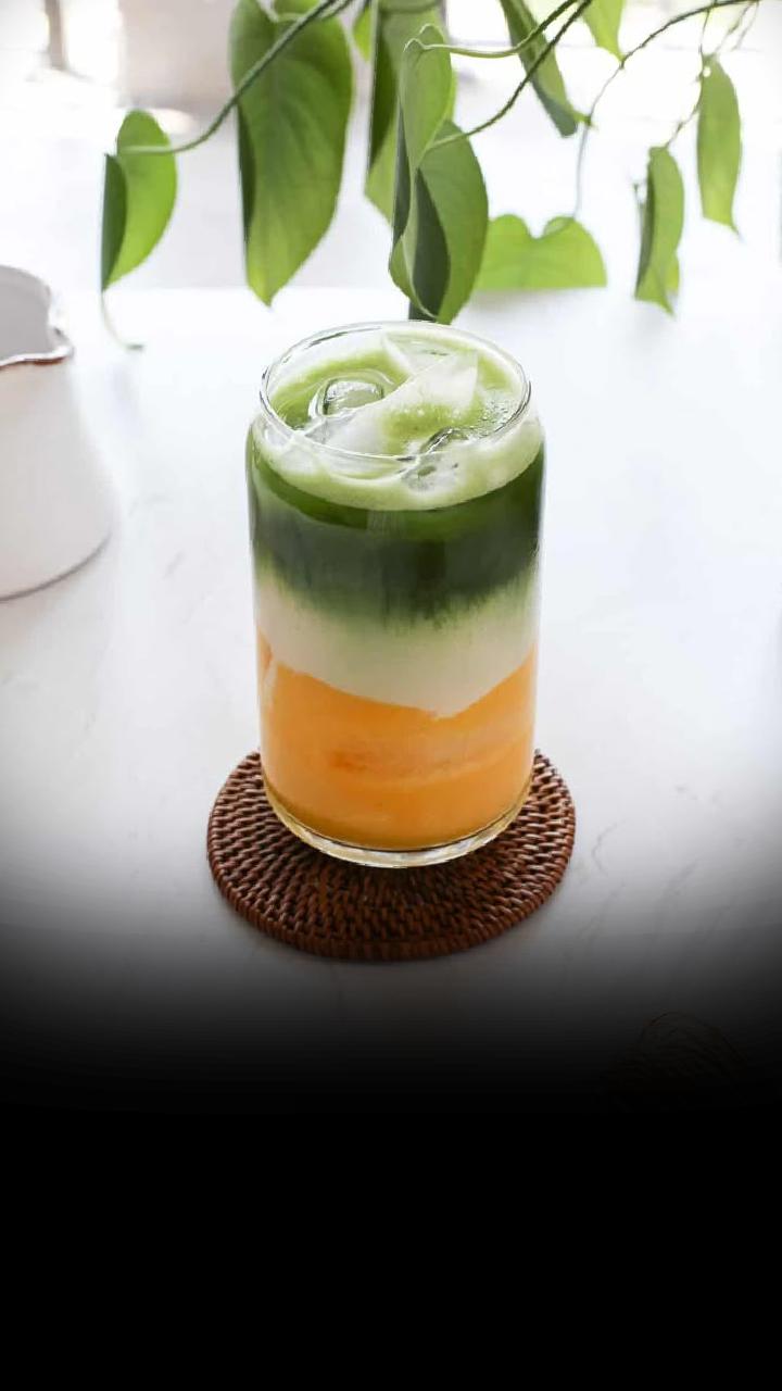 Mango pulp, milk, honey, and matcha—your perfect summer blend in a glass.