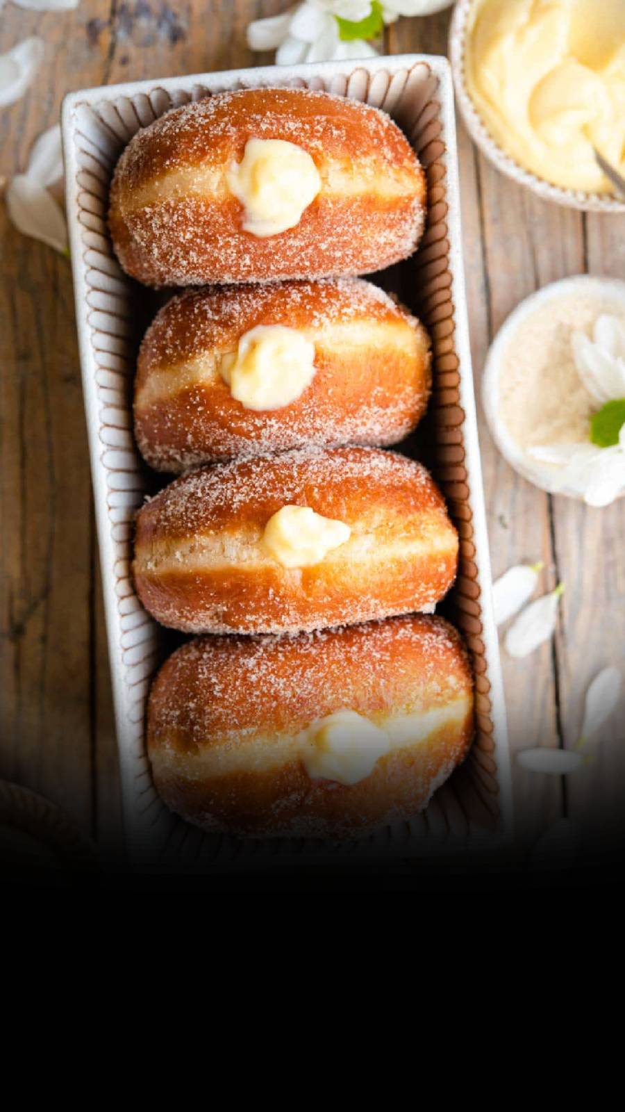 Fill your bomboloni with your favorite jam or pastry cream using a piping bag & enjoy.