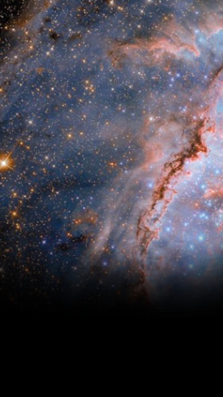NGC 346, home to over 2,500 newborn stars, features massive stars blazing with intense blue light, sculpting the glowing pink nebula and dark, snakelike clouds.