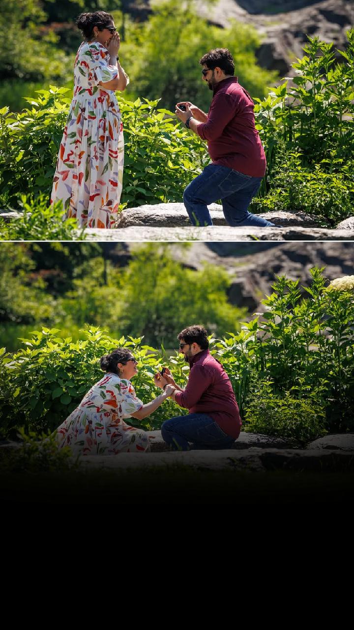 The dreamy proposal happened in Central Park, New York under the stars.
