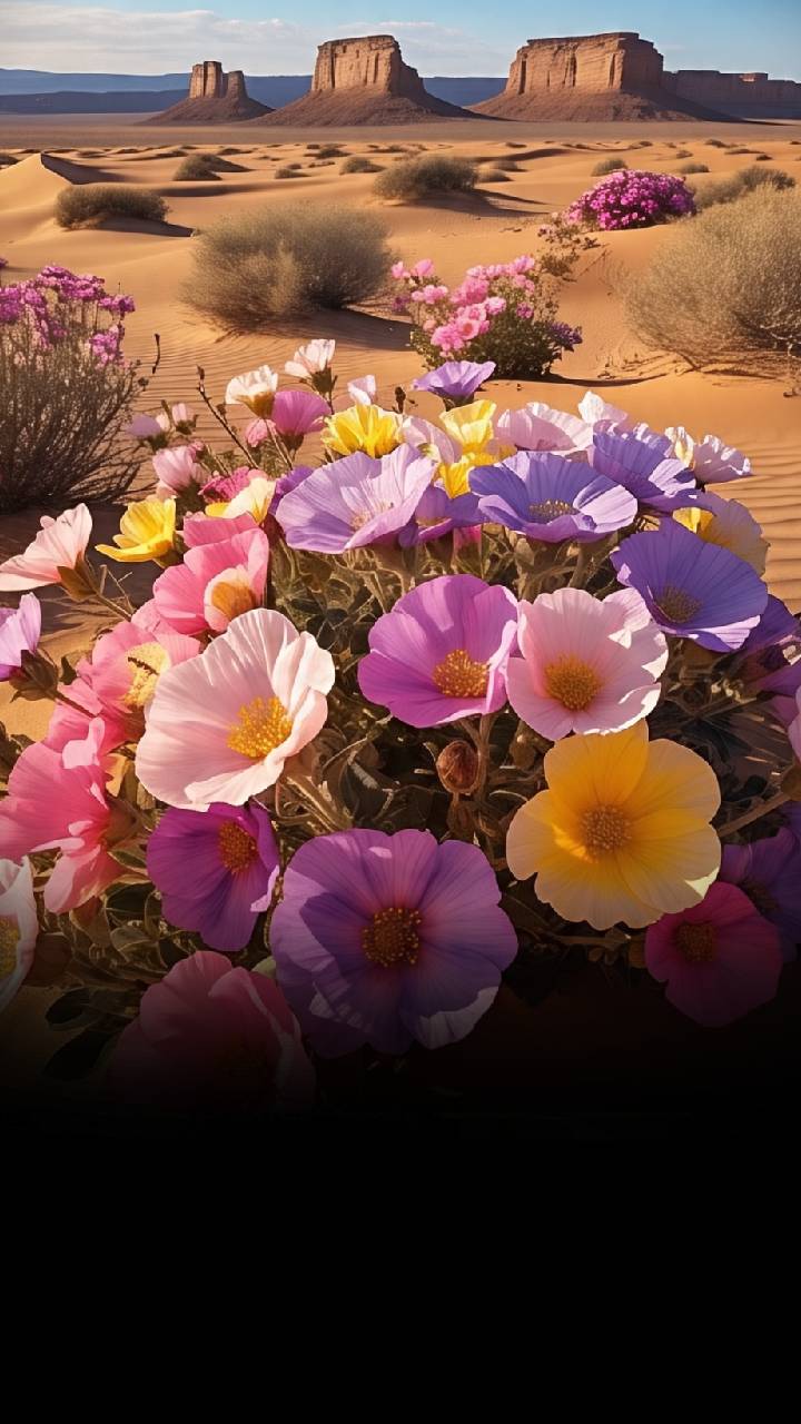 Desert plants survive harsh climates and burst into bloom after rare rains, creating a fleeting floral wonderland.