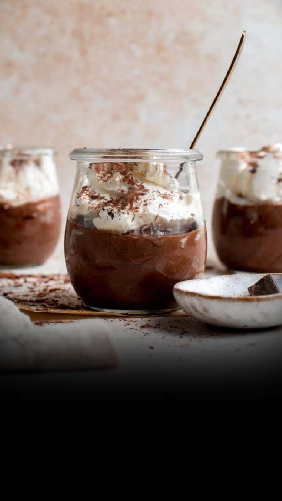Nutella, heavy cream, powdered sugar, vanilla extract, chocolate shavings.