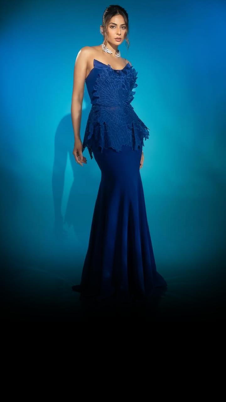 Rakul Preet Singh stuns in a dramatic strapless royal blue gown.