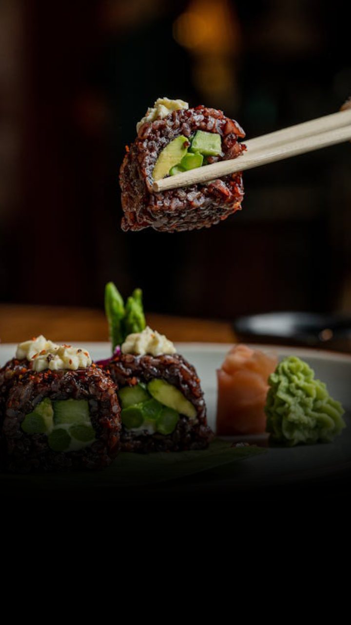 Roll the nori or fruit leather tightly. Slice it into bite-sized pieces. Serve and enjoy!