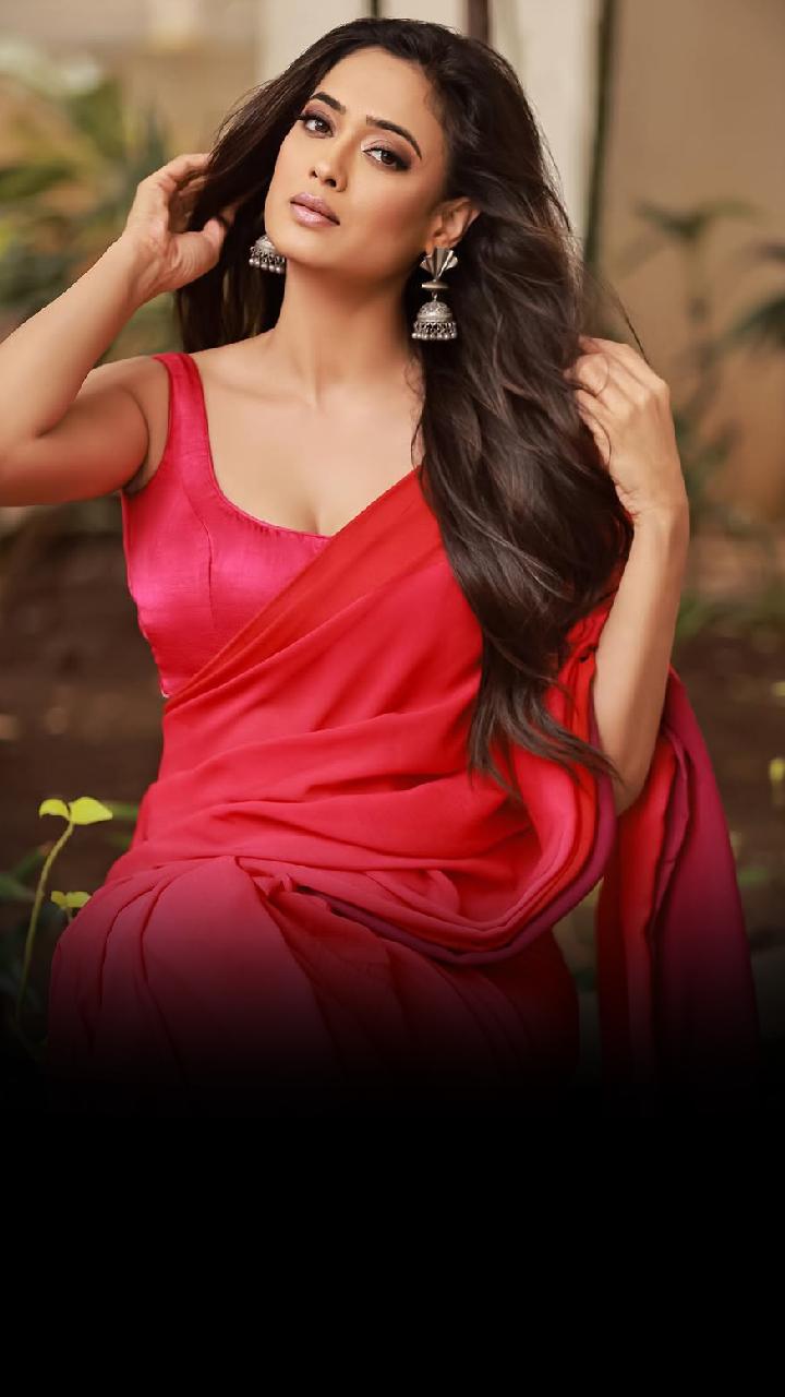 Draped in a vibrant rani pink saree, Shweta Tiwari radiates elegance.