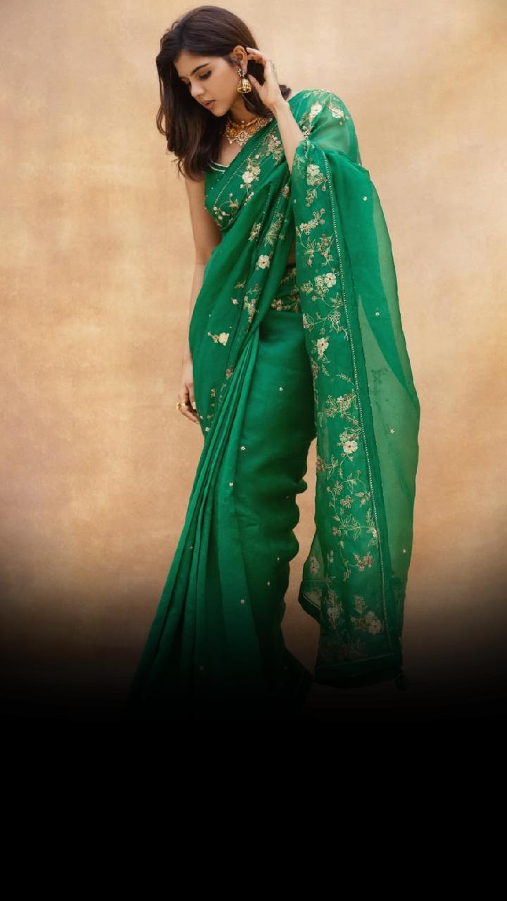 Kalyani's green saree look is pure fashion inspiration for festive occasions and celebrations.