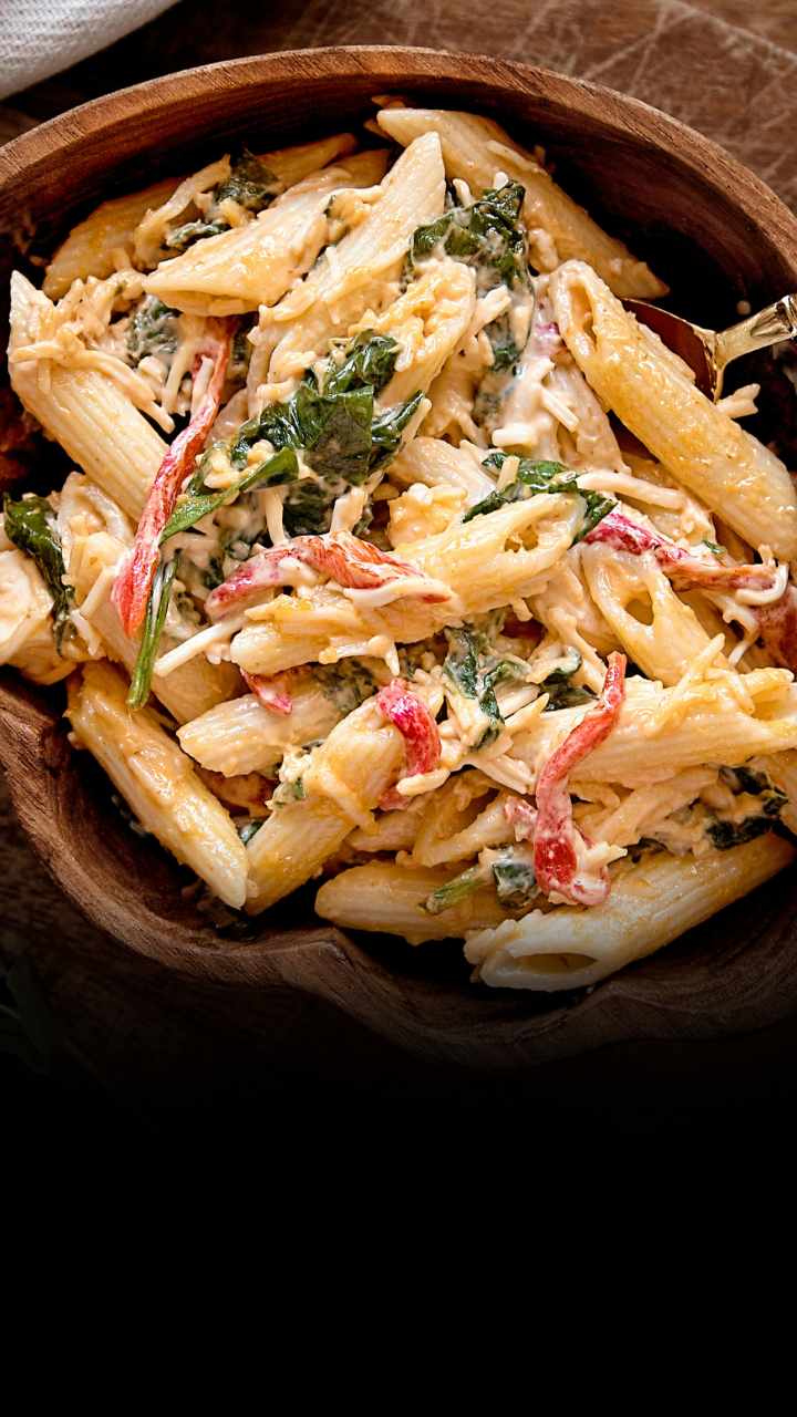 Add the cooked pasta to the pan and toss it in the creamy onion sauce. Garnish with fresh coriander, and serve hot!