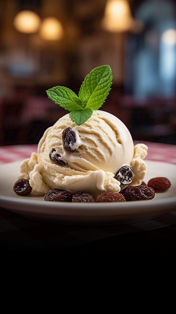 Churn the mixture in an ice cream maker, freeze for 4 hours, and enjoy your creamy homemade Fresh Milk Rum Raisin Ice Cream!