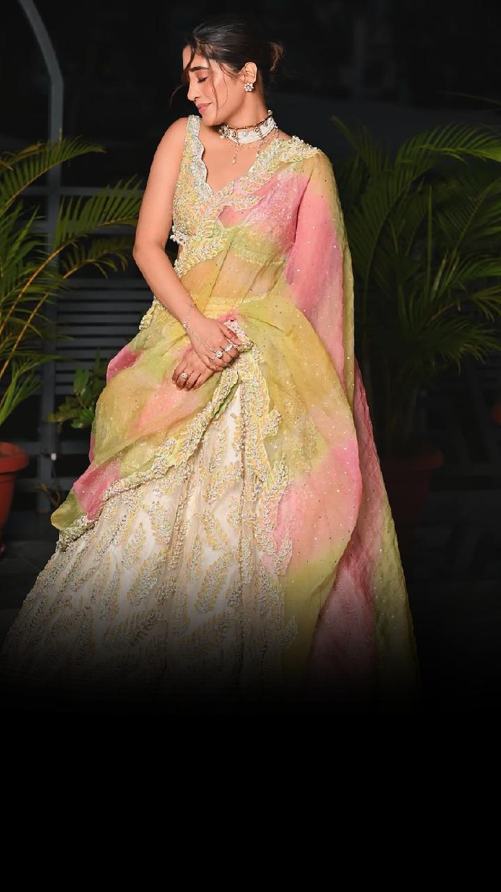 This exquisite ensemble is by Nitika Gujral—the ivory-pink tone adds a fresh twist while remaining timeless .
