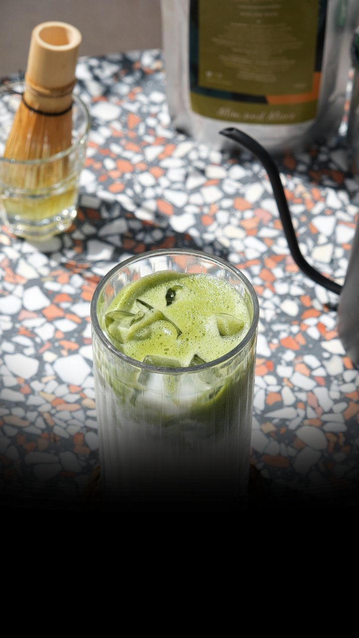 1 tsp matcha powder, 1 cup milk (dairy or non-dairy), 1 tsp honey (optional), ice cubes.