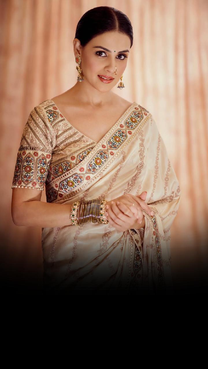 Pair your saree with subtle jewellery and natural makeup to get Genelia’s effortless glow.