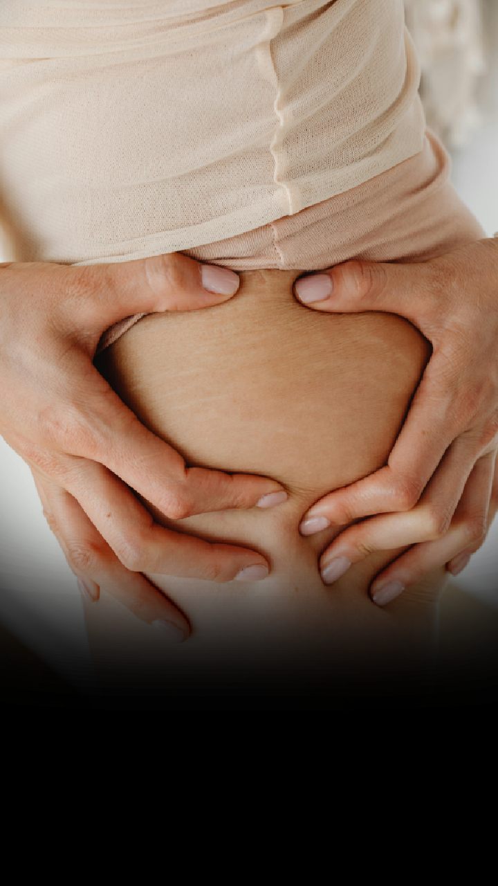 Massage in stretch mark cream with cocoa and/or shea butter twice daily to help diminish the appearance of stretch marks.