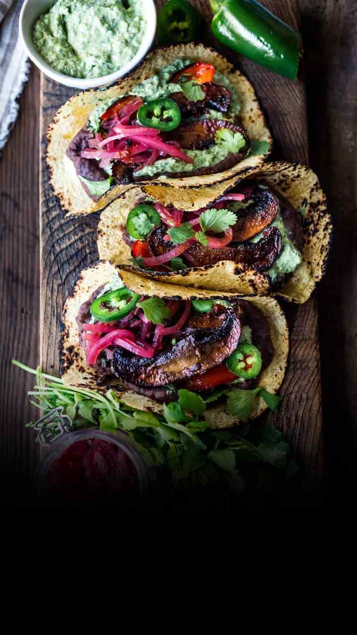 Fill tortillas with juicy mushrooms, avocado slices, and fresh cilantro.