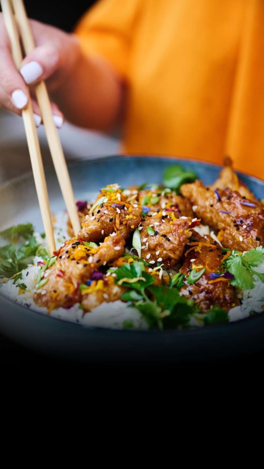 Once the chicken is cooked, drizzle the thickened sauce over the chicken, tossing to coat evenly.