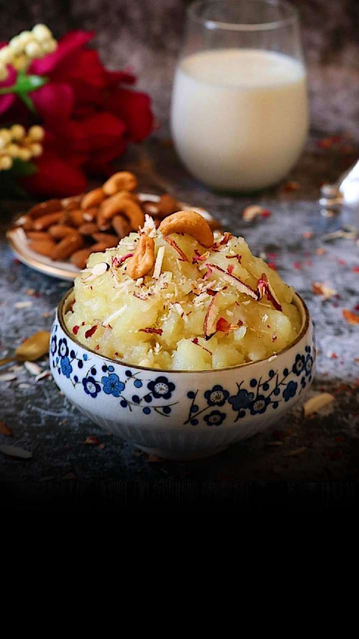 Top with roasted nuts of your choice, like almonds or cashews. Your Sweet Potato Halwa is ready! Serve warm and enjoy.