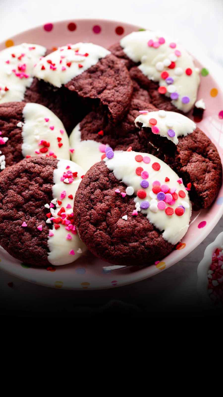 Mix flour, cocoa, sugar, butter, egg, vanilla & red food coloring. Blend well.