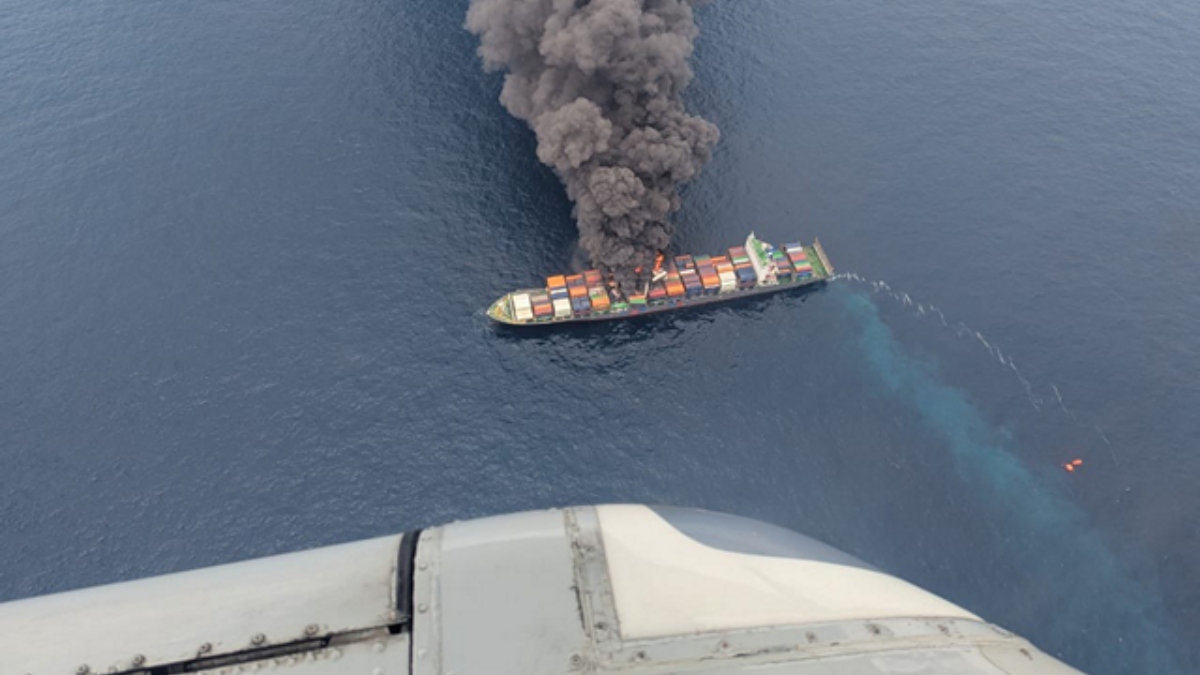Fires and explosions have been reported from mid-ships to the container bay ahead of the accommodation block. The forward-bay fire is under control, but thick smoke continues to be observed. The vessel is listing approximately 10-15 degrees to port, and additional containers have been reported overboard. Indian Coast Guard ships Samudra Prahari and Sachet are conducting fire-fighting