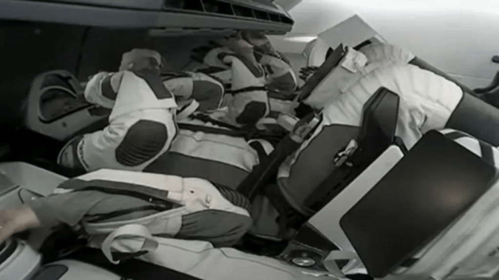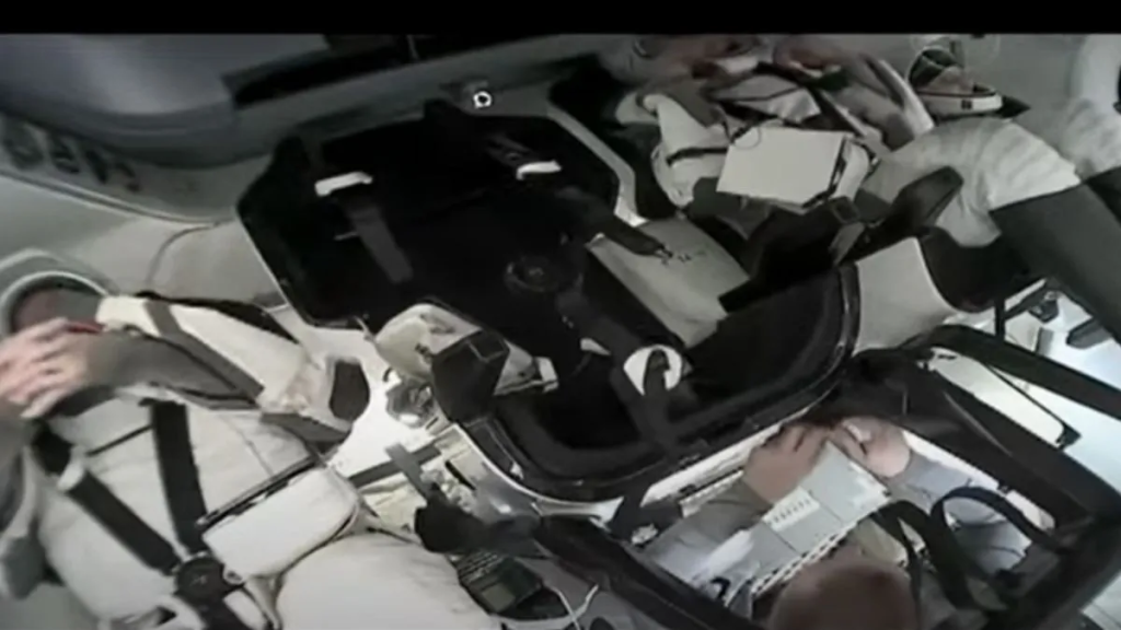 The crew were seen donning spacesuits ahead of the hatch closing of the Dragon spacecraft.