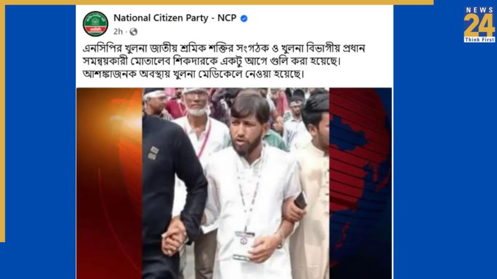 Just days after the assassination of Inquilab Mancha leader Sharif Osman Hadi, another political leader from the Jatiya Sramik Shakti, an affiliate of the National Citizen Party (NCP), was shot in broad daylight in Khulna, Bangladesh. The injured, identified as Motaleb Shikder, is the leader of the labour wing affiliated with the NCP. He was shot on Monday around 12:00 pm and was rushed to Khulna Medical College Hospital, where he remains in critical condition. The incident comes at a time when the country is already witnessing widespread unrest following the death of Osman Hadi.